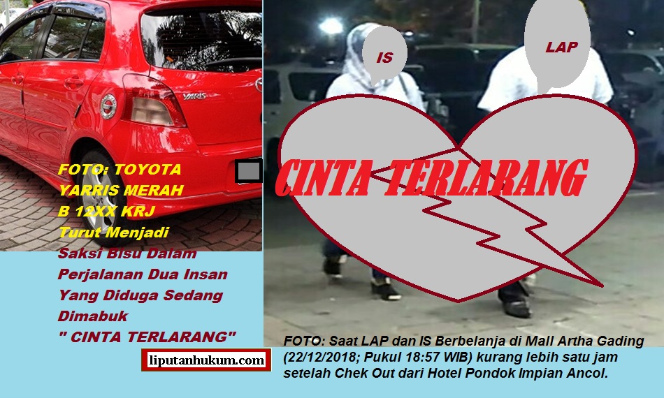 Peristiwa ini bermula ketika Tim Liputan Moralitas mengendus perjalanan yang mencurigakan dari pasangan ini ketika masuk ke salah satu hotel di kawasan Ancol tepatnya di Hotel Pondok Impian Ancol pada Sabtu (22/12/2018-Red). Karena penasaran, TIM Moralitas menunggu sampai pasangan ini Chek Out. Tepat Pukul 18.00 WIB, akhirnya pasangan ini Chek Out dengan mengenderai Mobil Toyota Yarris Merah dengan Nopol B 12XX KRJ dan melaju hingga akhirnya mampir di Mall Artha Gading daerah Kelapa Gading. LAP dan IS keluar dari Mobil Yarris dan masuk Mall.