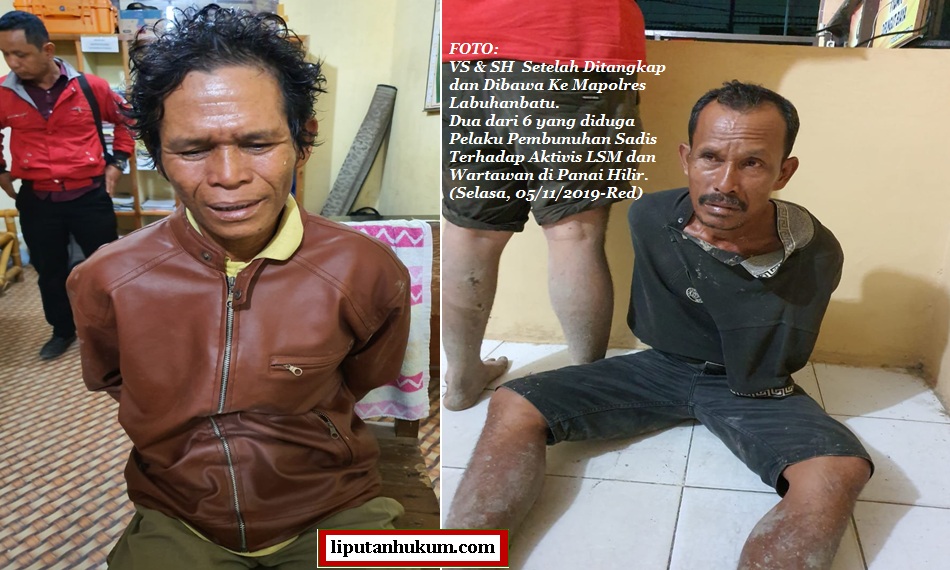 RANTAUPRAPAT-LH: Dua dari 6 Orang yang diduga sebagai pelaku pembunuhan sadis terhadap Aktivis LSM yang terakhir diketahui juga sebagai Wartawan Martua Parasian Siregar dan Temannya Ir. Maraden Sianipar Mantan Caleg yang juga terakhir diketahui berprofesi sebagai Wartawan akhirnya diringkus oleh Satuan Reserse dan Kriminal (Satreskrim) Polres Labuhanbatu. Kedua Orang yang sudah berhasil ditangkap yang diduga bagian dari pelaku pembunuhan sadis tersebut berinisial VS (49 Tahun) dan SH ( 50 Tahun). VS merupakan warga Dusun VI Sei Siali, Desa Wonosari, Kecamatan Panai Hilir, Kabupaten Labuhanbatu. Demikian pula SH tinggal dialamat yang sama yaitu Sei Siali, Desa Wonosari.