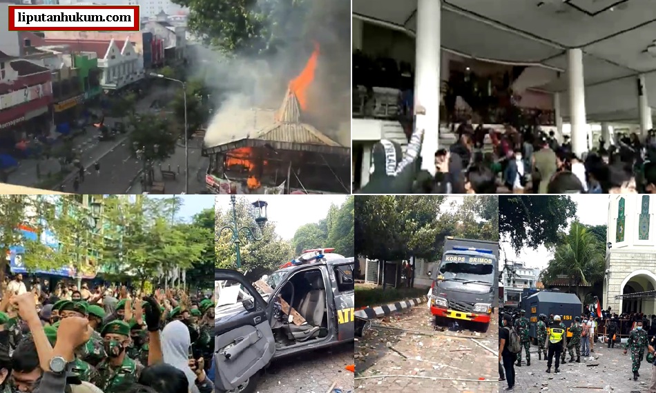 YOGYAKARTA-LH: Sejak siang (Kamis, Pukul 13.30 WIB; 08/10/2020-Red) tanda-tanda anarkis sudah mulai terjadi. Ribuan Massa Aksi Demo dari berbagai elemen menolak UU Omnibus Law Cipta Kerja yang baru saja disahkan DPR-RI (Senin, 05/10/2020-Red) sudah terkonsentrasi di depan Gedung DPRD DIY (Daerah Istimewa Yogyakarta) yang terletak di Jl. Malioboro sejak Pukul 12.00 WIB. Ribuan Mahasiswa dari berbagai Kampus yang menamakan dirinya Aliansi Rakyat Bergerak (ARB) yang berkumpul di Bundaran bergerak ke Gedung Wakil Rakyat DIY itu dimana Massa Buruh sudah lebih awal tiba. Mereka mengusung topik “Tolak UU Omnibus Law Ciptaker” dengan Tagar Yogyakarta Memanggil.