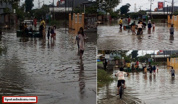 MAKASSAR-LH: Hujan deras yang terus mengguyur Kota Makassar beberapa hari terakhir ini membuat banjir di mana-mana. Salah satu tempat yang cukup parah adalah di Paccerakkang, Kelurahan Biringkanaya, tepatnya depan Perumahan Kompleks Kodam Tiga. Tampak Banjir melanda wilayah ini (Rabu, 10/03/2021-Red).