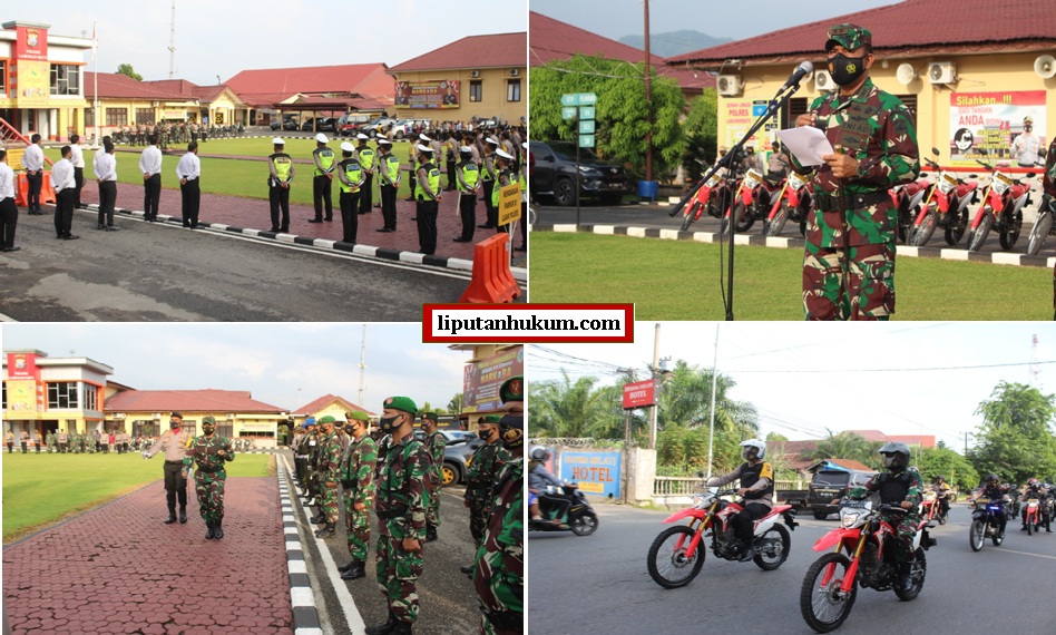 Tampak Hadir dalam kegiatan Apel Gelar Pasukan antara lain, Kapolres Labuhanbatu AKBP Deni Kurniawan, SIK, MH, Danramil 03/SB Mayor Inf Syamsul Anwar Harahap, Wakapolres Labuhanbatu Kompol M. Taufik, SE, Kabag Ops Kompol Maluddin, S.Ag, Pasi Ops Lettu Inf Sabar I Simanjuntak, Danramil 08/RP Kapten Kav Boston, Dansub Denpom I/1-2 Rantauprapat Kapten Cpm Hendri, Personel Kodim 0209/LB, Personel Brimob Tanjung Balai dan Personel Polres Labuhanbatu. (Hamdani)