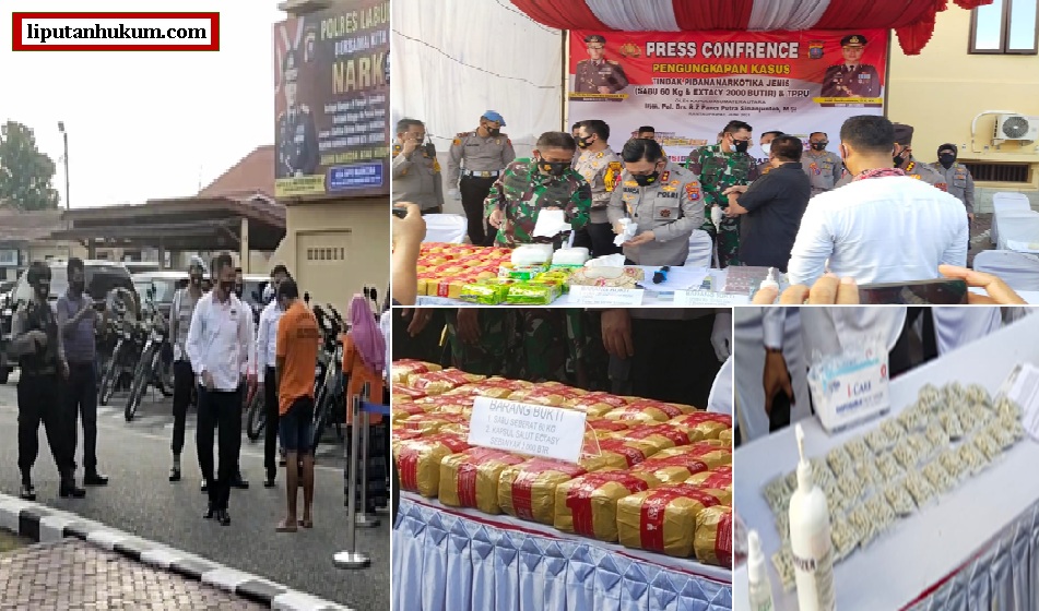 Dalam Konferensi Pers (Press Confrence) di Lapangan Mapolres Labuhanbatu, Kapolda Sumut Irjen Pol Drs R.Z Panca Putra Simanjuntak, M.Si menyampaikan “ Sore hari ini, bertempat di halaman Mapolres Labuhanbatu, Saya akan menyampaikan Release hasil pengungkapan Tindak Pidana Narkotika membawa dan mengedarkan Narkotika jenis Sabu-sabu sebanyak kurang lebih 60 Bungkus atau setara dengan 60 Kilo dan 2 Kotak berisi Pil Extacy sebanyak 2000 Butir yang berhasil kita ungkap pada Hari Senin Tanggal 14 Juni 2021 Pukul 09.30 WIB “ pungkas Kapolda Sumut itu membuka Press Confernce di Halaman Mapolres Labuhanbatu (Jum’at Sore, 18/06/2021).