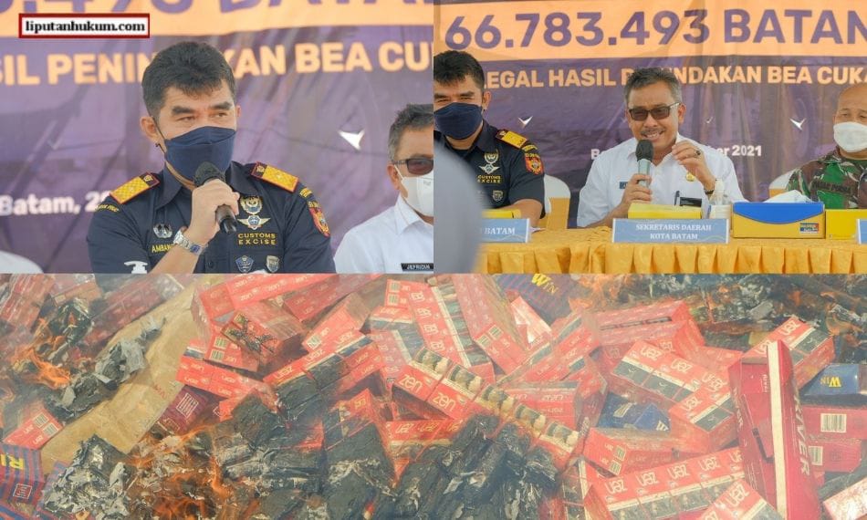 BATAM-LH: Bea Cukai Batam memusnahkan 66,78 juta batang rokok ilegal hasil Operasi Cukai termasuk di dalamnya Operasi Gempur Rokok Ilegal periode tahun 2020 hingga 2021 bertempat di Sagulung (Rabu, 29/12/2021).