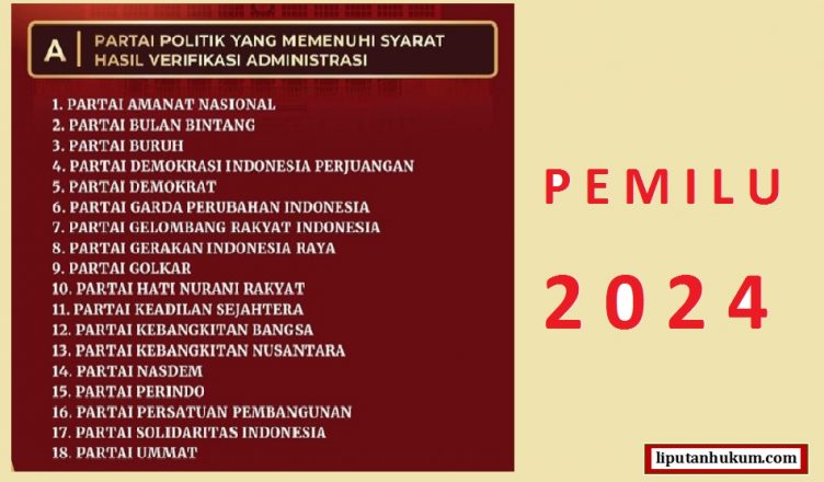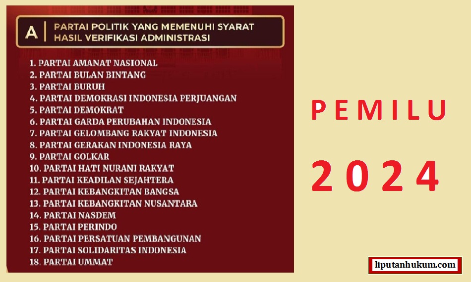 LIPUTANHUKUM.COM: Pesta Rakyat (Demokrasi) Indonesia tidak lama lagi akan berlangsung tepatnya tahun 2024 yang akan datang. Salah satu syarat sebuah negara demokrasi adalah adanya wadah rakyat yang disebut Partai Politik yang nantinya akan memperjuangkan aspirasinya di Parlemen atau yang di Indonesia lazim disebut Dewan Perwakilan Rakyat baik yang berada di Daerah Kabupaten/ Kota dan Provinsi (DPRD) maupun yang berada di Pusat (DPR-RI).