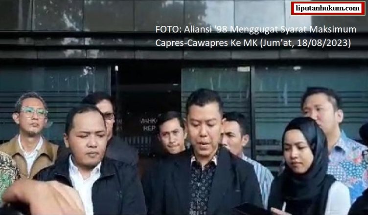 Pada 18 Agustus 2023 yang lalu, sebanyak 98 Pengacara mengajukan gugatan UU Pemilu ke Mahkamah Konstitusi (MK). Mereka meminta syarat usia Capres/Cawapres diubah dari tidak terbatas diubah menjadi maksimal 70 tahun. ” Untuk itu, pada hari ini, 18 Agustus 2023, bertempat di gedung Mahkamah Konstitusi, merupakan hari yang bersejarah dalam perjalanan demokrasi bangsa Indonesia yang untuk selanjutnya dinamakan sebagai Jum’at Glory ” demikian Keterangan Pers Aliansi ’98 itu.