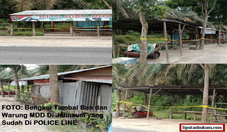 Dari hasil investigasi dan pantauan wartawan liputanhukum.com, salah satu bengkel Tambal Ban di Jalinsum tidak jauh dari lokasi kejadian ditemukannya jenazah Khairul Abdi Tarigan, telah dipasang POLICE LINE.