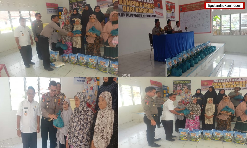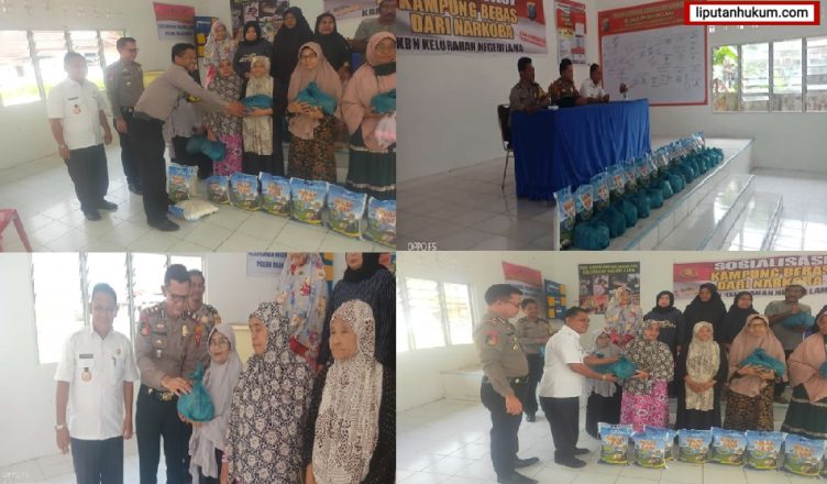 LABUHANBATU-LH: Polsek Bilah Hilir Resor Labuhanbatu berikan bantuan sembako kepada masyarakat di sekitar Posko Kampung Bebas dari Narkoba (Rabu, 04/10/2023).