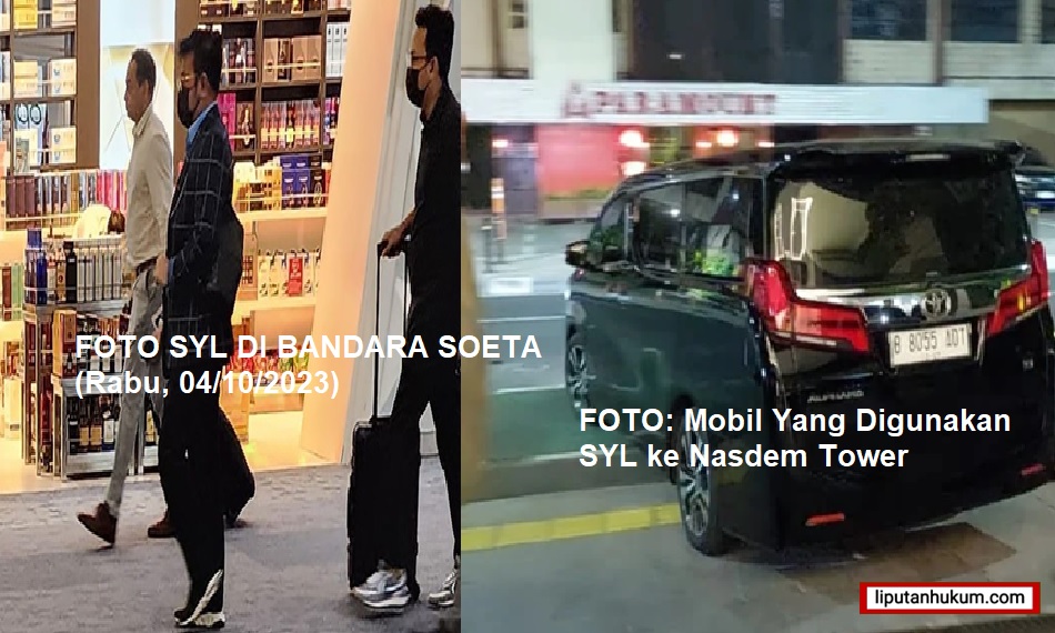 Selanjutnya, SYL tiba di NasDem Tower sekitar Pukul 19.45 WIB. Kurang lebih 4 jam kemudian tepatnya Pukul 00.21 WIB (Kamis Dinihari, 05/10/2023), tampak mobil yang membawa SYL keluar dari Markas Partai NasDem tersebut.
