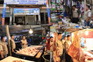 LABUHANBATU-LH: Satgas Pangan Satreskrim Polres Labuhanbatu menggelar inspeksi mendadak (sidak) di sejumlah pasar di wilayah hukum Polres Labuhanbatu meliputi Pasar Glugur Rantauprapat Kabupaten Labuhanbatu dan Pasar Aek Kanopan I Labuhanbatu Utara Kabupaten Labuhanbatu utara (Labura) pada Jum’at (15/12/2023).