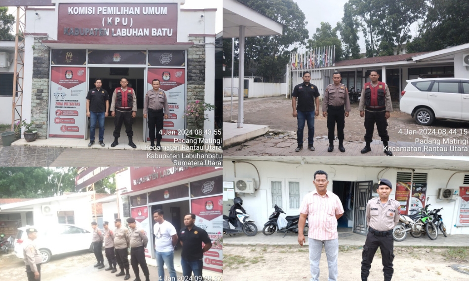 LABUHANBATU-LH: Polres Labuhanbatu melaksanakan kegiatan pengamanan di Kantor Komisi Pemilihan Umum (KPU) Kabupaten Labuhanbatu dan Labuhanbatu Utara. Kegiatan ini merupakan bagian dari persiapan menjelang Pemilihan Umum Tahun 2024 di wilayah tersebut pada Kamis (04/01/2024)