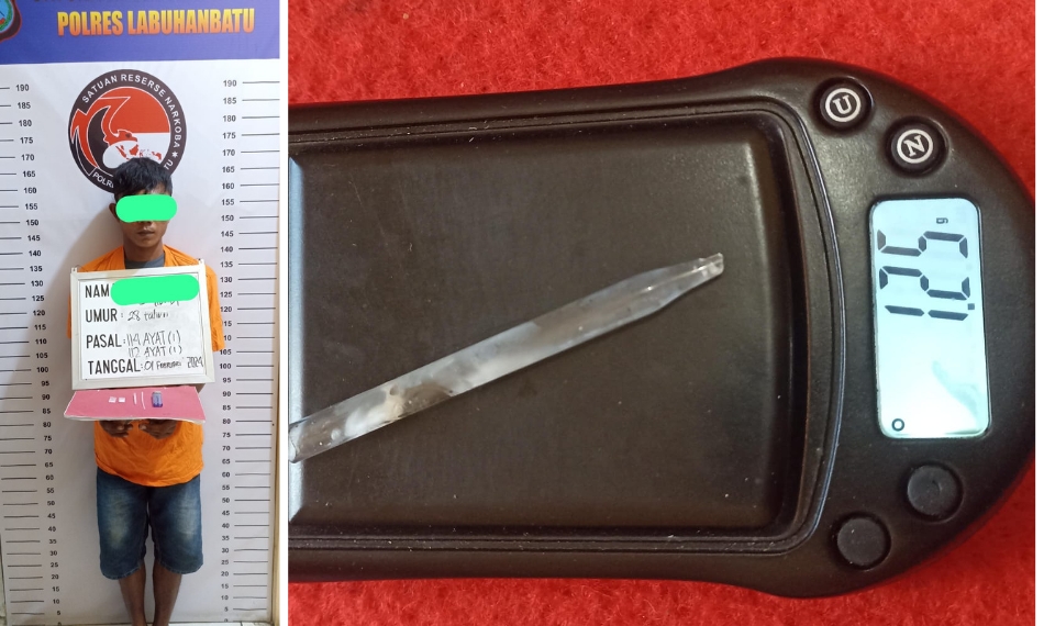 LABUHANBATU-LH: Sebuah informasi dari masyarakat tentang adanya transaksi narkotika jenis sabu di Dusun I Desa Sidorukun, Kecamatan Pangkatan, Kabupaten Labuhanbatu, memicu tindakan cepat dari Tim Opsnal Satres Narkoba Polres Labuhanbatu. Tim berhasil meringkus seorang laki-laki berinisial H alias HERDI, berusia 28 tahun, yang merupakan warga setempat, Kamis (08/02/2024)