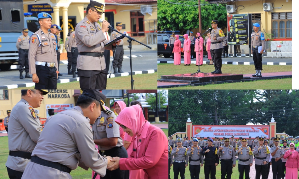 Pelaksanaan upacara kenaikan pangkat tersebut dihadiri Wakapolres Labuhanbatu Kompol H. Matondang, S.H., M.H., bersama dengan Pejabat Utama (PJU) dan anggota Polres Labuhanbatu