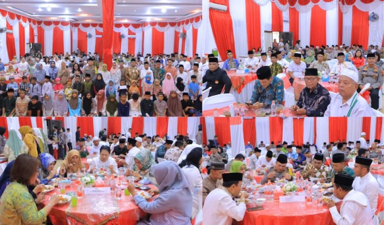 LABUHANBATU-LH: Polres Labuhanbatu mengadakan kegiatan buka puasa bersama dengan unsur forkopimda Kabupaten Labuhanbatu dan Kabupaten Labuhanbatu Utara, yang dirangkai dengan memberi santunan kepada anak yatim piatu, di aula Yan Piter, Jum’at (22/03/24).