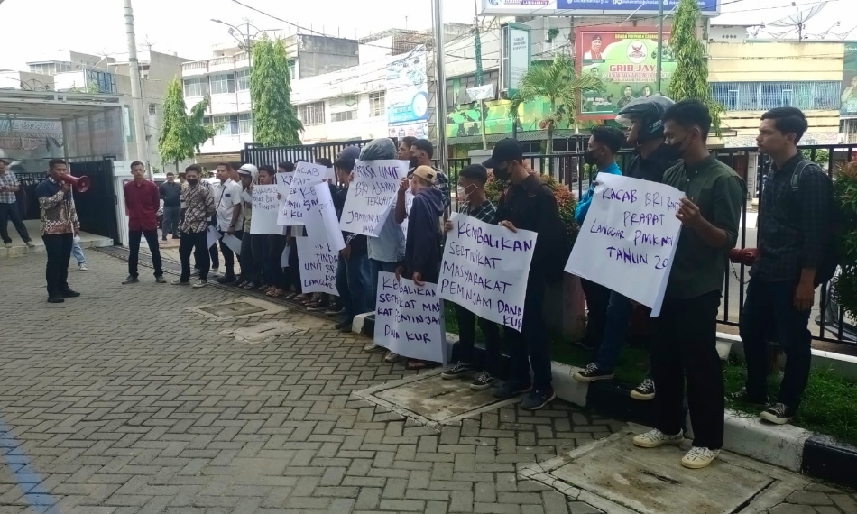 Aksi yang dilakukan puluhan masyarakat dan mahasiswa tersebut, untuk menuntut BRI mengembalikan jaminan nasabah berupa surat agunan, saat melakukan pinjaman dana Kredit Usaha Rakyat (KUR) di seluruh kantor cabang BRI.