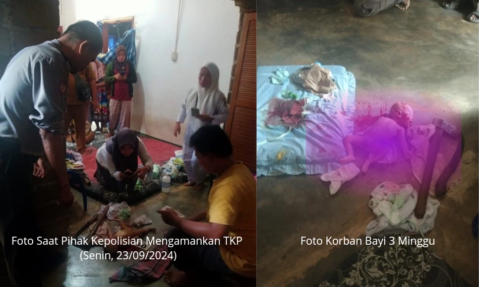 LABURA-LH: Pagi ini (Senin, 23/09/2024) Warga Masyarakat Dusun Bangunrejo, Desa Bangunrejo, Kecamatan Na: IX-X, Kabupaten Labuhanbatu Utara (Labura) digegerkan dengan adanya seorang Ibu berinisial YW (33 Tahun) yang diduga kuat menghabisi bayinya yang baru berumur sekitar 3 Minggu tepatnya 18 hari dengan cara menggoroknya dengan Kampak.