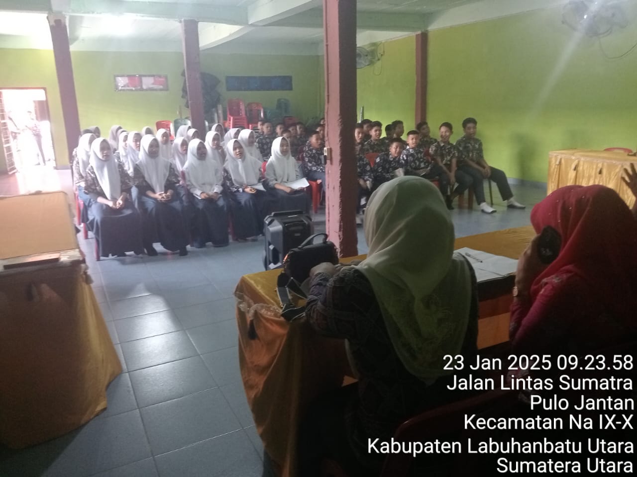 LABURA-LH: Polsek NA:IX-X Resor Labuhanbatu hadir sebagai pemapar pada Kegiatan Penyuluhan Bahaya Narkoba di SMK Swasta Dwi Guna Kampung Pajak Desa Kampung Pajak Kecamatan Na: IX-X Kabupaten Labuhanbatu Utara yang dilaksanakan pada hari ini (Kamis, 23/01/2025).