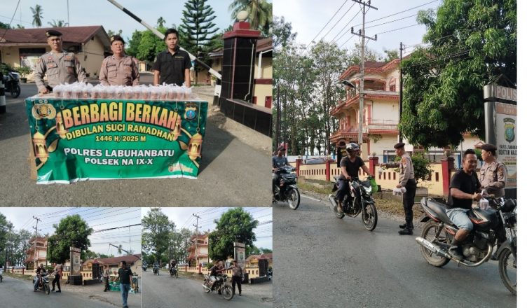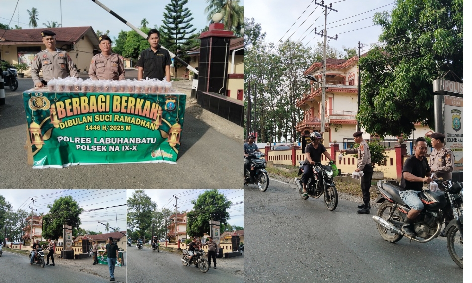 Hari ini, Selasa (18/03/2025) Personil Polsek Na:IX-X melakukan giat bagi berkah berupa bagi-bagi takjil berupa kolak pisang di Jalan Lintas Sumatera Kelurahan Aek Kota Batu Kecamatan Na: IX-X Kabupaten Labuhanbatu Utara (Labura).
