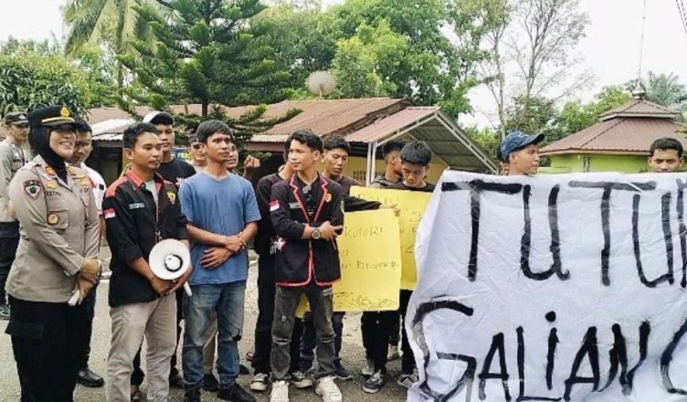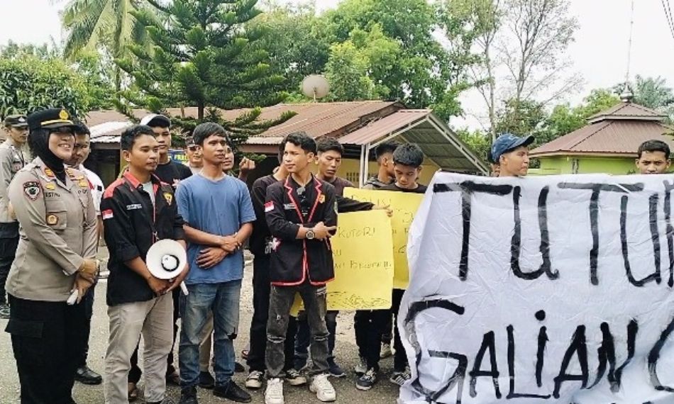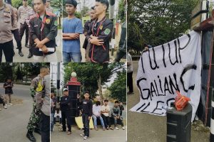 Peserta aksi dengan jumlah sekitar 15 orang dilengkapi dengan pengeras suara dan membawa spanduk yang salah satunya bertuliskan “TUTUP GALIAN C ILEGAL”. Mereka dipersilahkan berorasi di gerbang pintu Mapolsek dan diajak berdialog oleh Kapolsek, Kanit Reskrim, dan Kanit Intel.