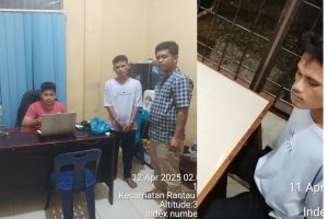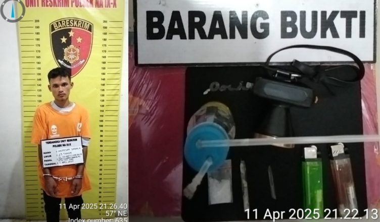 LABURA-LH: Team Opsnal Polsek Na:IX-X Resor Labuhanbatu berhasil menangkap Seorang Laki-laki (23 Tahun) bernama Haposan Sagala Als Posan Warga Dusun II Hatapang Desa Hatapang di salah satu Pondok di Pinggir Sungai Aek Kota Batu tepatnya di Dusun I Simpang Marbau Kecamatan Na:IX-X Kabupaten Labuhanbatu Utara (Labura) pada Jum’at Malam Pukul 19.00 WIB (11/04/2025).