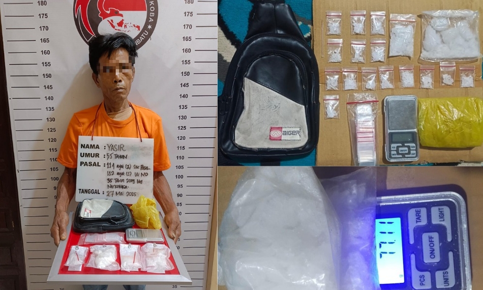 Dalam penggeledahan, ditemukan barang bukti narkotika jenis sabu sebanyak 17 (tujuh belas) plastik klip besar dan sedang dengan berat bruto 77,11 gram yang disimpan dalam tas milik tersangka. Kepada petugas, Y mengakui bahwa sabu tersebut miliknya, yang ia peroleh dari seorang pria berinisial I. Namun, saat dilakukan pengejaran terhadap pelaku I, yang bersangkutan belum berhasil ditemukan.