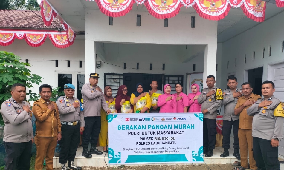 LABURA-LH: Dalam rangka menjaga stablitas pasokan dan harga pangan beras, Polsek Na:IX-X Resor Labuhanbatu laksanakan Gerakan Pangan Murah Untuk Masyarakat di wilayah hukum Polsek Na:IX-X. Kegiatan ini dilaksanakan pada Senin (11/08/2025) Pukul 10.00 WIB di Kantor Desa Pasang Lela Kecamatan NA: IX-X Kabupaten Labuhanbatu Utara (Labura).