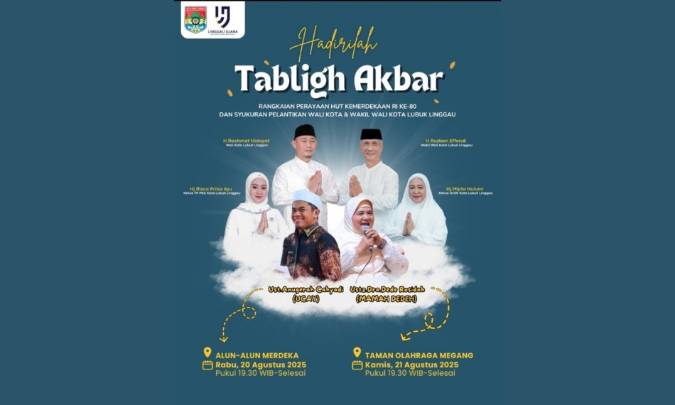 Masyarakat diimbau hadir bersama keluarga untuk menyemarakkan malam penuh doa dan tausiah ini. Semoga kegiatan ini membawa berkah bagi Kota Lubuklinggau dan seluruh warganya. (Abdi)