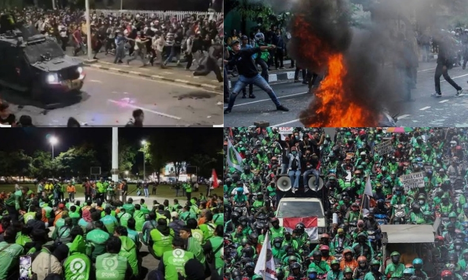 Kobaran api dengan cepat membakar Halte Senen yang berada di Simpang Lima Senen, Jakarta Pusat, Jumat malam, dan melumat habis seluruh bangunan halte hingga menyisakan kerangka bangunan. Para pengunjuk rasa juga memblokade Jalan Gatot Subroto depan Gedung DPR RI.