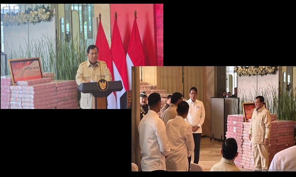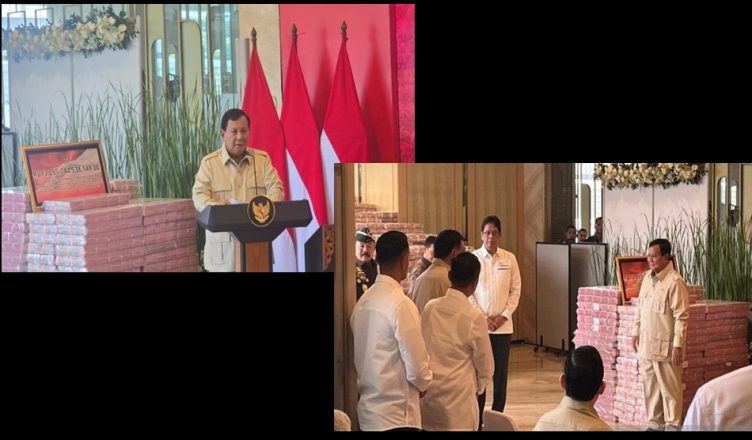Presiden Prabowo Hadiri Acara Penyerahan Uang Sitaan Senilai Rp13,2 Triliun oleh Kejagung di Kasus Korupsi Persetujuan Ekspor CPO