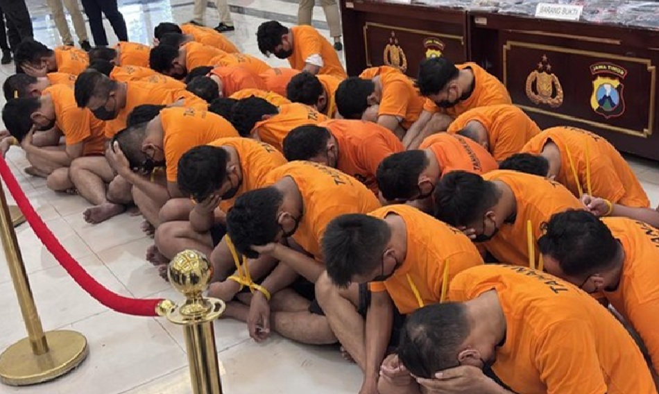 Polisi kemudian menetapkan 34 orang sebagai tersangka, terdiri dari satu pendana, satu admin utama, tujuh admin pembantu, dan 25 peserta. Latar belakang mereka di antaranya aparatur sipil negara (ASN), wiraswasta, pekerja swasta, petani, guru, hingga mahasiswa. “Ada beberapa kota [asal] yang bersangkutan baik yang ada di Jawa Timur maupun di luar kota Jawa Timur. Kemudian statusnya ada yang swasta, wiraswasta, kemudian ada yang ASN termasuk mahasiswa,” ucap Edy
