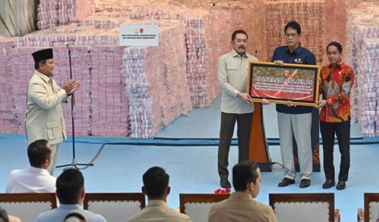 LIPUTANHUKUM.COM: Uang tagihan denda senilai Rp6,6 triliun diserahkan oleh Kejaksaan Agung (Kejagung) Republik Indonesia kepada pemerintah pada Rabu (24/12/2025). Penyerahan itu dilakukan Jaksa Agung ST Burhanudin kepada Menteri Keuangan Purbaya Yudhi Sadewa. Acara tersebut juga disaksikan Presiden Indonesia Prabowo Subianto.