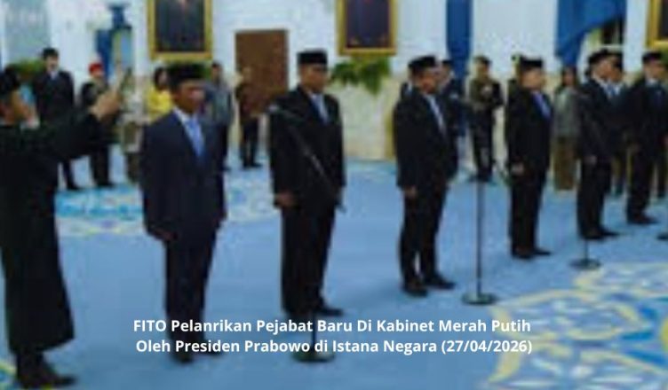 “ Demi Allah saya bersumpah bahwa saya akan setia kepada UUD 1945 serta akan menjalankan segala peraturan perundang-undangan dengan selurus-lurusnya ” pungkas Presiden Prabowo saat memimpin pembacaan sumpah jabatan yang diikuti para pejabat yang dilantik (Senin, 27/04/2026).