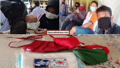 MAKASSAR-LH: Komunitas Wartawan Liputan Hukum Peduli Covid-19 yang ada di Pulau Sulawesi yang sedang berada di Kota Makassar melakukan bagi-bagi masker kepada Pengguna