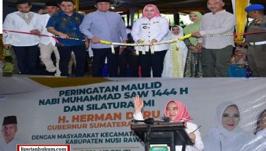 MUSIRAWAS-LH: Bupati Musirawas Hj Ratna Machmud bersama Gubernur Sumatera Selatan H Herman Deru (HD) menghadiri acara Peringatan Maulid Nabi Muhammad SAW dan Silaturahmi