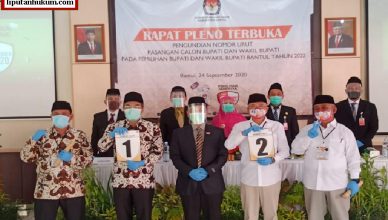 BANTUL-LH: Komisi Pemilihan Umum (KPU) Bantul telah melakukan Pengundian Pada Rapat Pleno Terbuka atas 2 Pasangan Calon (Paslon) Bupati Bantul untuk berlaga pada