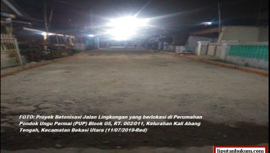 BEKASI-LH: Proyek Betonisasi Jalan Lingkungan yang dibiayai oleh APBD Kota Bekasi diduga kuat bermasalah. Hal ini terlihat dengan sudah rusaknya proyek ini padahal