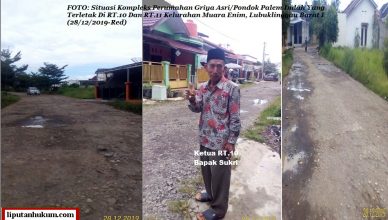 LUBUKLINGGAU-LH: Kondisi jalan perumahan yang semakin banyak berlubang dan jalan yang sudah hancur di Kompleks Perumahan Griya Asri/ Pondok Palem Indah yang terletak