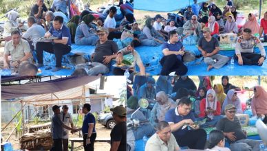 LABUHANBATU-LH: Kapolres Labuhanbatu AKBP Dr. Bernhard L. Malau, S.I.K., M.H beserta PJU (pejabat utama) melakukan silaturrahmi dan makan bersama dengan masyarakat penolak PKS