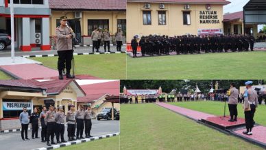 LABUHANBATU-LH: Kapolres Labuhan Batu AKBP Dr. Bernard L, Malau, S.I.K.,M.H memimpin Apel Kesiapan Pengamanan Pengoperasian PT. PPSP di lapangan Apel Polres Labuhan Batu,