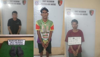 LABUHANBATU-LH: Unit Reskrim Polsek Aek Natas Resor Labuhanbatu, yang dipimpin oleh Kanit Reskrim IPDA Bambang Wahyudi, SH, MH, berhasil menangkap 03 orang pelaku