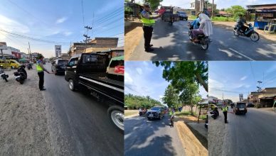 LABUHANBATU-LH: Pos Yan II Simpang Hocklie Polres Labuhanbatu melaksanakan Rakayasa Lalu Lintas dan Pengaturan arus lalu lintas di sepanjang Jalan S.M. Raja, Kecamatan