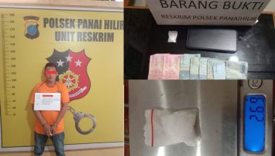 LABUHANBATU-LH: Kanit Reskrim Polsek Panai Hilir IPDA DP. Samosir.S.sos bersama Tim Opsnalnya berhasil meringkus pelaku penjual Narkotika jenis sabu seorang laki laki yang