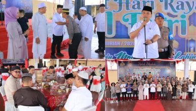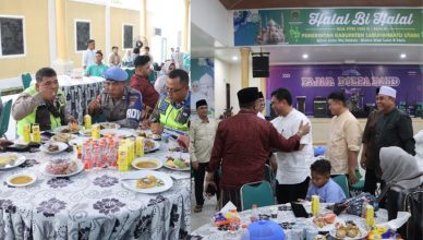 LABUHANBATU-LH: Gedung Serbaguna Mapolres Labuhanbatu dipenuhi kehangatan dan kebersamaan saat keluarga besar Polres Labuhanbatu berkumpul dalam acara Halal Bihalal menyambut Hari Raya Idul