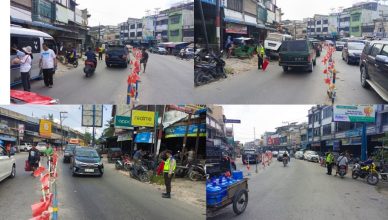 LABUHANBATU-LH: Personel Pos Yan 6 Gunting Saga Polres Labuhanbatu turut berperan dalam menjaga kelancaran arus lalu lintas di sekitar pos pelayanan. Kegiatan ini