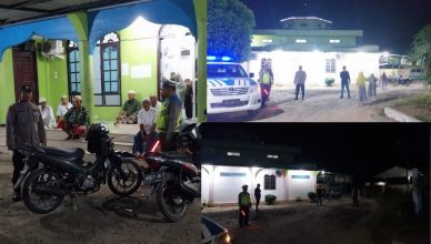 LABUHANBATU-LH: Personel Pos Lantas Pamingke Polres Labuhanbatu melaksanakan patroli ke tempat-tenpat ibadah. Tempat ibadah yang menjadi sasaran patroli adalah Mesjid Al Yaman di