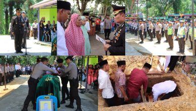 LABUHANBATU-LH: Kapolres Labuhanbatu, AKBP Dr. Bernhard L. Malau, S.I.K., M.H., memimpin upacara persemayaman dan pemakaman Almarhum Aiptu Heru Pariyanto, yang menjabat sebagai PS.