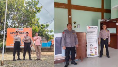 LABUHANBATU-LH: Personel Polres Labuhanbatu melaksanakan kegiatan pengamanan di Kantor Badan Pengawas Pemilu (Bawaslu) Kab.Labuhanbatu JL. Patuan Nalobi Padat / Karya Aek Tapa A
