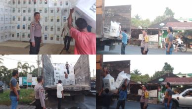 Rekapitulasi Selesai, Personel Polres Labuhanbatu Kawal Pergeseran Kotak Suara dari PPK ke Gudang Logistik KPU Labura
