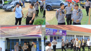 LABUHAMBATU-LH: Kapolres Labuhanbatu AKBP Dr Bernhard L Malau road show ke Kantor Panitia Pemilihan Kecamatan (PPK) memantau kondisi proses perhitungan perolehan suara Pemilu