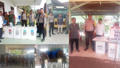 LABUHAMBATU-LH: Personel Polres Labuhanbatu Lakukan Pengawalan Pergeseran Logistik Pemilu Tahun 2024 dari Kantor PPS Desa Pasang Lela ke Gudang Logistik PPK Kec Na