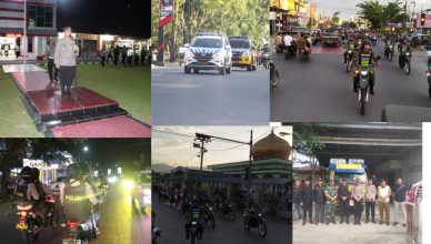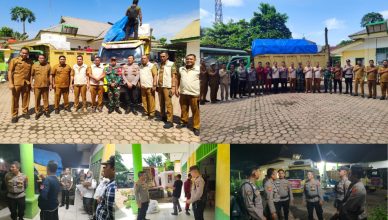 LABUHANBATU-LH: Kapolres Labuhanbatu AKBP Dr. Bernhard L. Malau SIK MH, memimpin apel gabungan untuk pelaksanaan patroli skala besar menjelang pemungutan suara untuk cipta